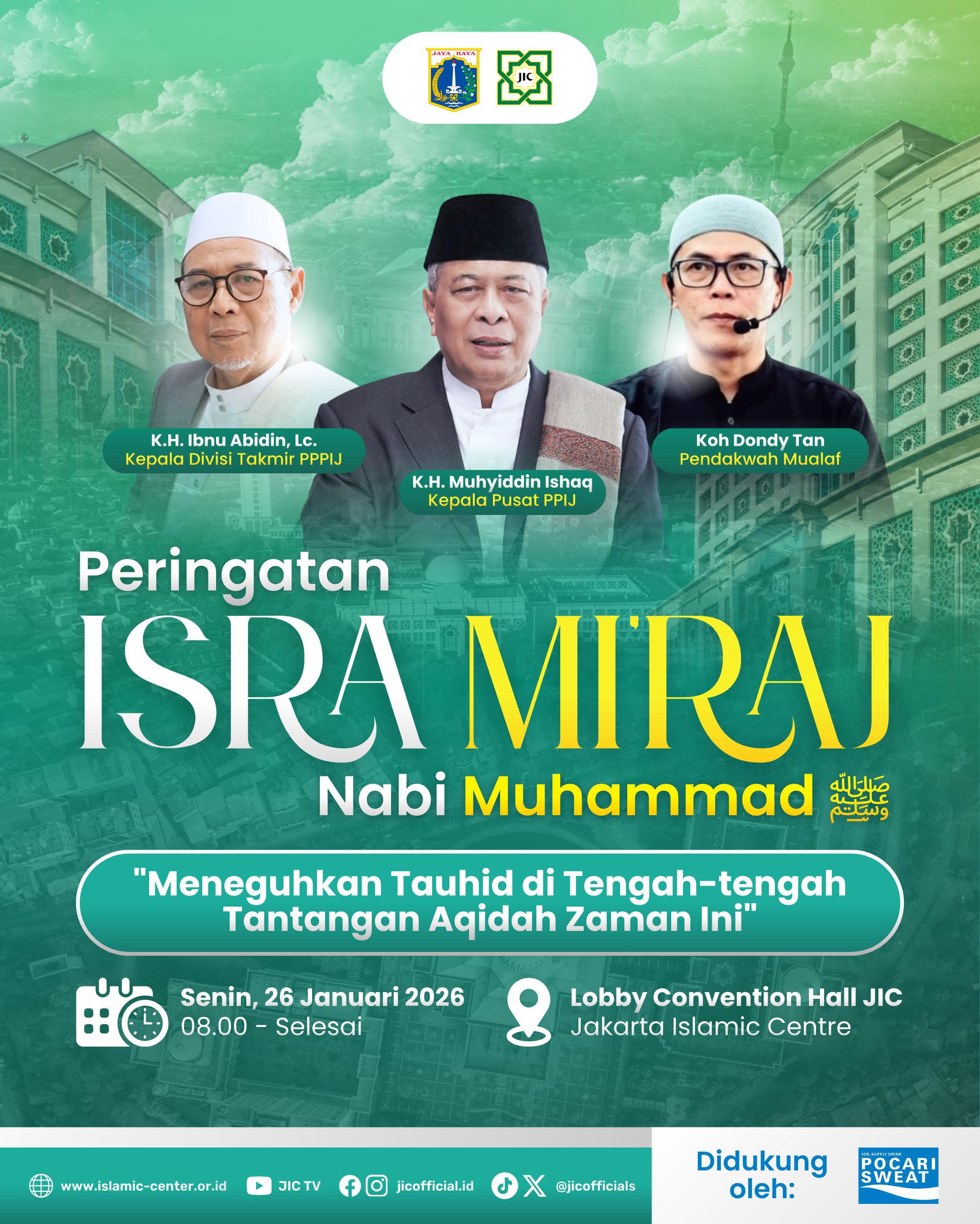 Jakarta (Mediaislam.id)–Pusat Pengkajian dan Pengembangan Islam Jakarta (Jakarta Islamic Centre/JIC) mengajak umat Muslim untuk menghadiri peringatan Isra’ Mi’raj Nabi Muhammad 1447 Hijriah yang akan digelar pada Senin, 26 Januari 2026.