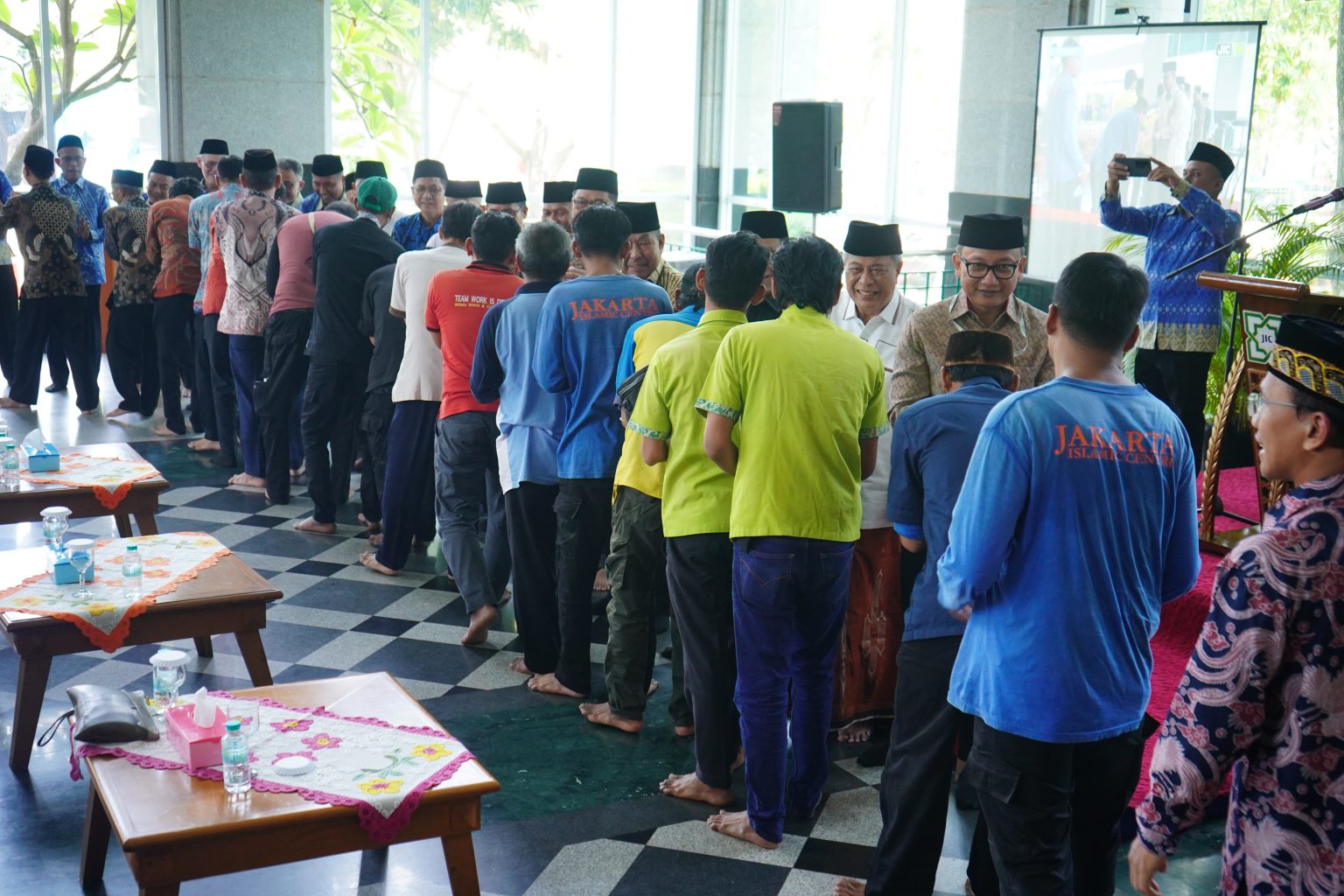 Kegiatan dilanjutkan dengan doa yang dipimpin Imam Masjid Raya Jakarta Islamic Centre, H. Muhtadi Azis, S.Ag., yang memohon keberkahan dan keberlanjutan ukhuwah. Suasana hangat semakin terasa saat sesi ramah tamah, di mana seluruh peserta saling bersalam-salaman dan bermaaf-maafan.