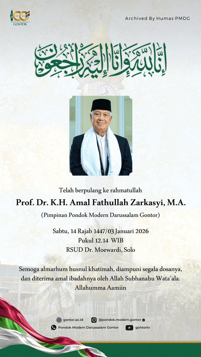 Baca juga: Pimpinan Pondok Modern Darussalam Gontor Prof Dr KH Amal Fathullah Wafat
