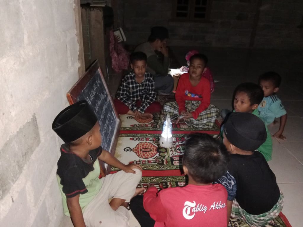 Meski kelelahan sepulang dari hutan, anak-anak pedalaman tersebut tetap hadir mengaji selepas Magrib bersama Ustaz Awi.