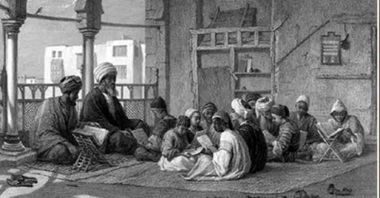 Aktivitas belajar-mengajar di masa peradaban Islam.