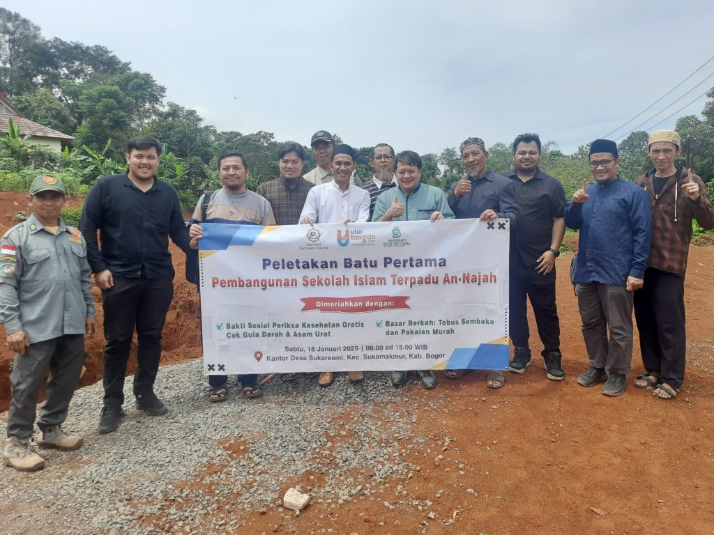 Bogor, Mediaislam.id–Sabtu, 18 Januari 2025 Yayayasan Indonesia Uluran Tangan bersama Yayasan Dakwah Dachlan Center (DDC) sukses menggelar acara peletakan batu pertama Pembangunan Sekolah Islam Terpadu Annajah di Desa Sukaresmi, Kecamatan Sukamakmur, Kabupaten Bogor, Jawa Barat. Kegiatan ini dimeriahkan dengan bakti sosial berupa pengobatan gratis serta Bazar Berkah yang menjual sembako dan pakaian murah bagi masyarakat.