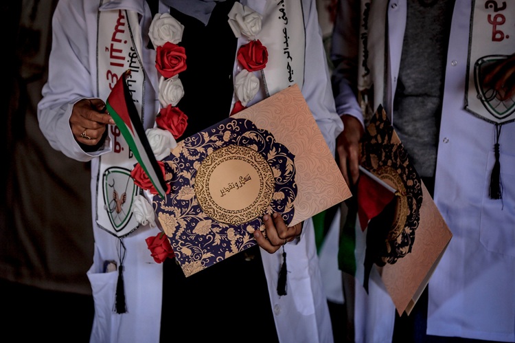 Pejabat Kementerian Kesehatan Gaza, Youssef Abu al-Reish, menggambarkan upacara tersebut sebagai kelulusan dari “rahim penderitaan, di bawah bombardir, di antara reruntuhan dan sungai darah”.